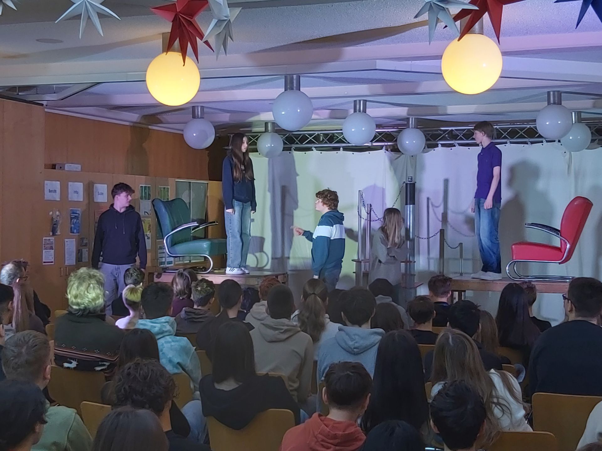 Im an das Theaterstück folgenden Nachgespräch mit den Schülern wurden die eigene Identitätssuche, unsere gesellschaftliche Verantwortung und Verhaltensweisen wie Mitläufertum thematisiert.