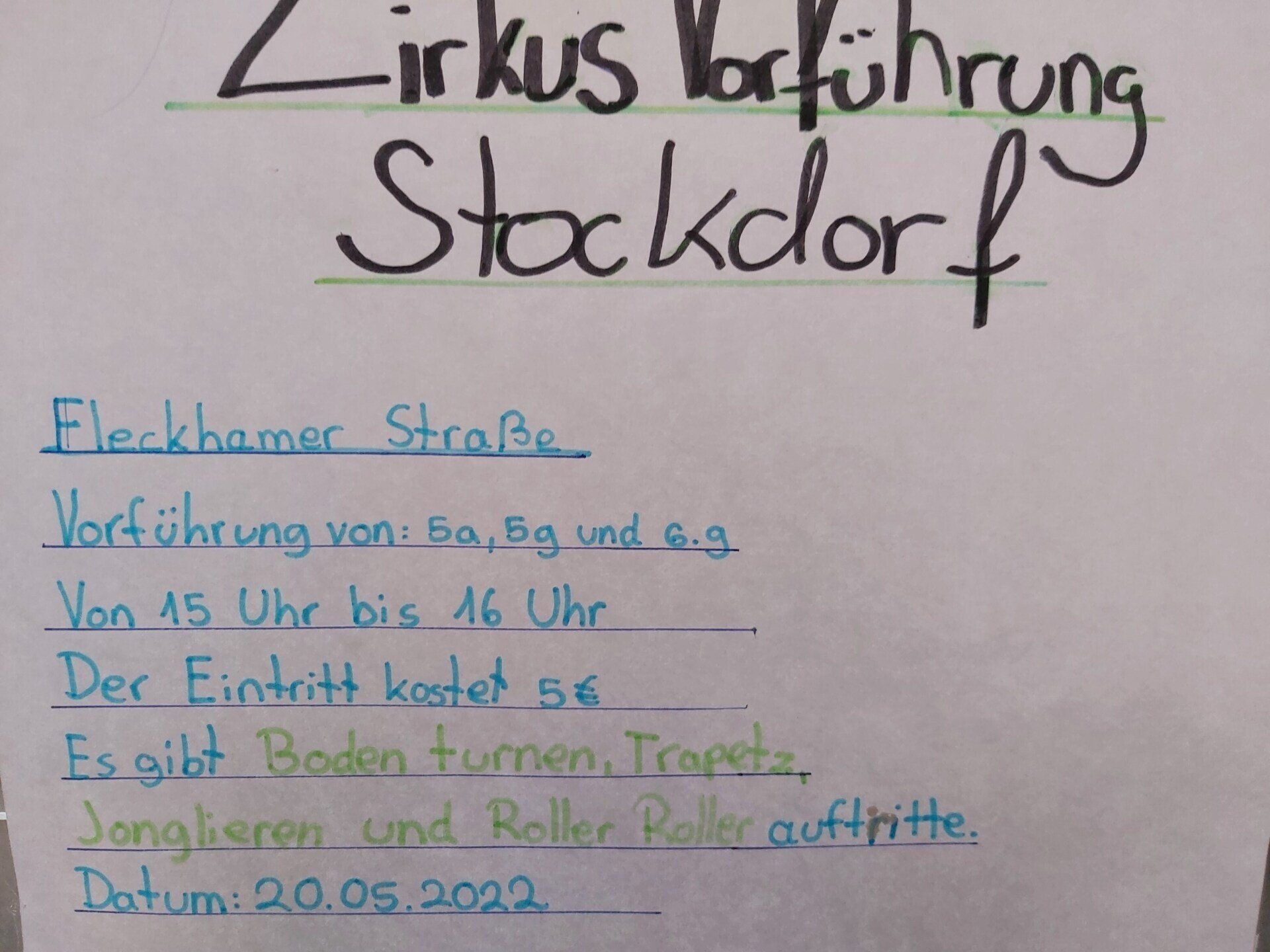 16.05. - 20.05.2022 - Zirkusprobe mit Aufführung,